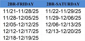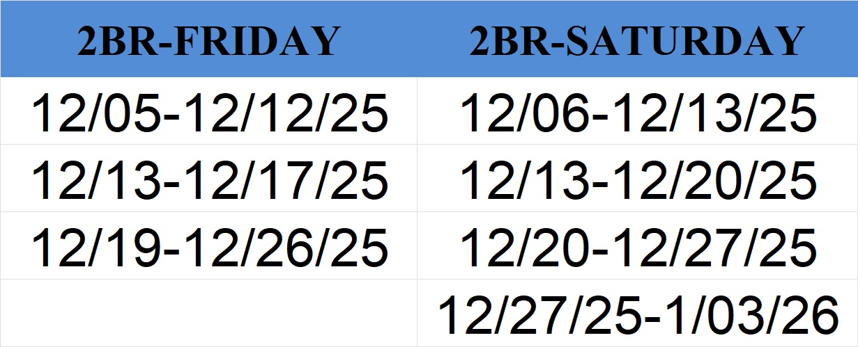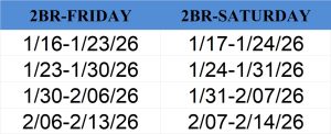 *Please call Reservations for more information: (858) 792-0904 Mon-Fri 9am-3pm Pacific time (closed 12-1) or email : vlm@vlmci.com