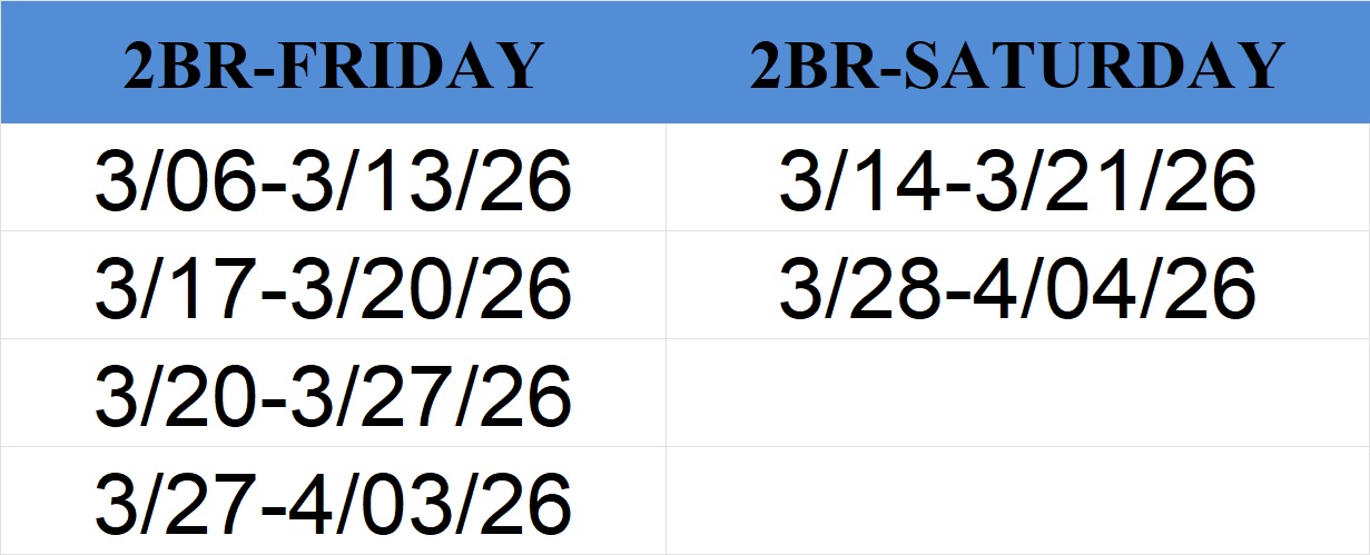 Availability for Owner Bonus Time is subject to change. *Note: Dates further out may be available; please contact Reservations.
